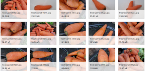 上述文件夹中的每一个都包含不同水果和蔬菜的子文件夹,其中显示了相应食品项目的图像该数据集收集自不同的在线来源。